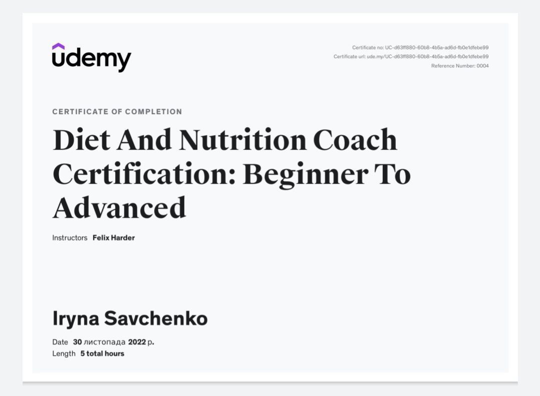 Понад 6 років досвіду в проектах про саморозвиток, роботу з тілом та трансформацію способу життя. Навчаюся у найкращих дієтологів, ендокринологів, їжджу закордон - все для того, щоб допомагати своїм клієнтам отримувати результати їх мрій